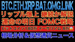 【Youtube紹介】【相場分析】リップル爆上継続か解説‼️運命のFOMC前戦略‼️ビットコイン180万 イーサリアム8万まで暴落【仮想通貨】リンクバットOMG.BTC.ETH.XRP.BAT.LINK