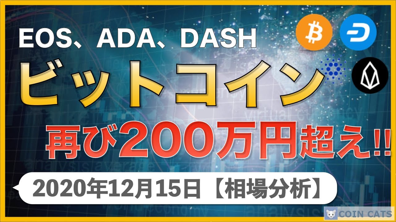 【Youtube紹介】【BTC、EOS、ADA、DASH】ビットコインは再び200万円へ!先週紹介したチャンスのあるコイン3つはどうなった?結果発表!【12月15日 相場解説】