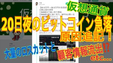 【Youtube紹介】仮想通貨:※追記※20日夜のビットコイン急落の原因②。大量ロスカットと顧客情報流出!?【暗号資産】