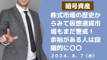 【Youtube紹介】ビットコイン株式市場の歴史からみて仮想通貨市場もまだ警戒!余裕のある人は段階的に〇〇